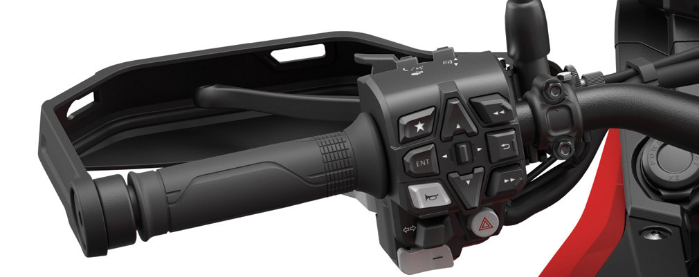 La transmisión por cadena, de 6 velocidades, se ofrece en opciones de cambio manual y automático de doble embrague (DCT), esta última con una función “G”, seleccionable en la pantalla TFT, para maximizar la tracción en condiciones off-road.